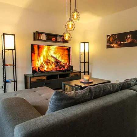 The spacious 73 m^2 Moderne Fewo Sky Netflix Terrasse Burgblick Boxspringbett Waschtrockner Apartment is located in Bullay, 4.1 km from the rotem Backstein gemauerten Collis Turm, and boasts a solarium. A short distance from the 1-bedroom apartment you will find Prinzenkopfturm.
